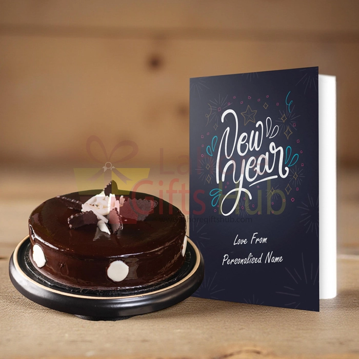 Tags: chocolate cake with new year card, new year gifts Lahore, personalized new year card, Lahore Gifts Hub, festive cake, greeting card combo, chocolate cake gift